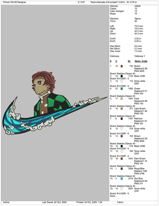 Tanjiro Kamado Swoosh v10 Embroidery Design Files - 3 Size'sPrecio habitual $6.99 USDPrecio habitualPrecio unitario / por-