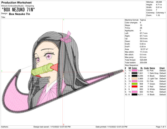Nezuko Kamado Swoosh v3 Embroidery Design Files - 3 Sizes