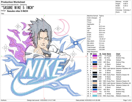 Sasuke Uchiha Swoosh v7 Embroidery Design Files - 1 Size's