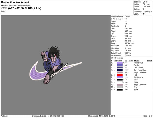 Sasuke Uchiha Swoosh v6 Embroidery Design Files - 4 Sizes