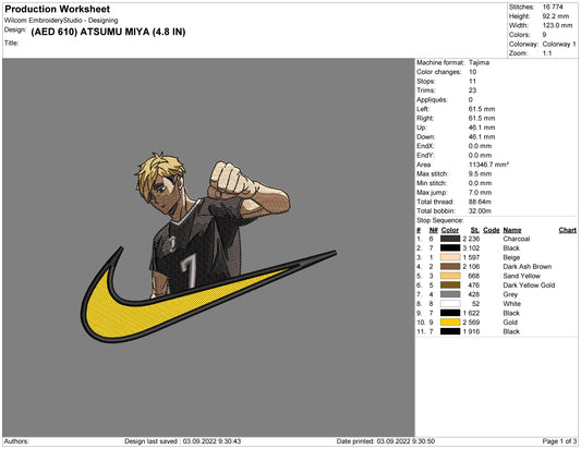 Atsumu Miya Swoosh Embroidery Design Files - 4 Size's