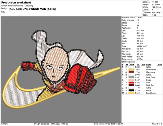 One Punch Man Swoosh Embroidery Design Files - 5 Size's