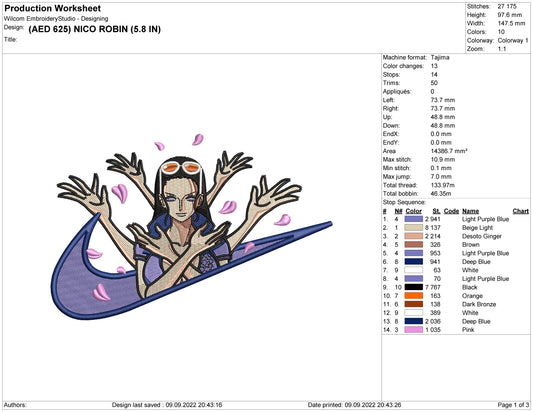Nico Robin Swoosh v2 Embroidery Design Files - 4 Size's