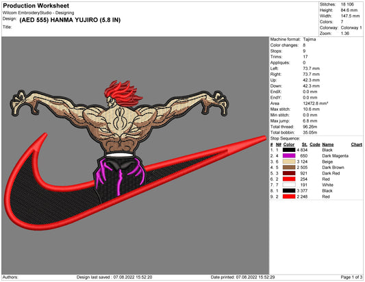Hanma Yujiro Swoosh v2 Embroidery Design Files - 3 Sizes