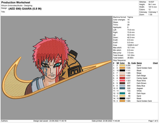 Gaara Swoosh Embroidery Design Files - 4 Size's