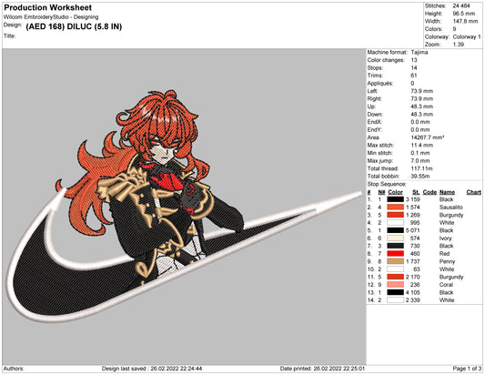 Diluc Ragnvindr Swoosh Embroidery Design Files - 4 Size's