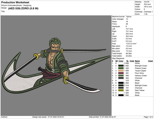 Roronoa Zoro Swoosh v2 Embroidery Design Files - 4 Size's