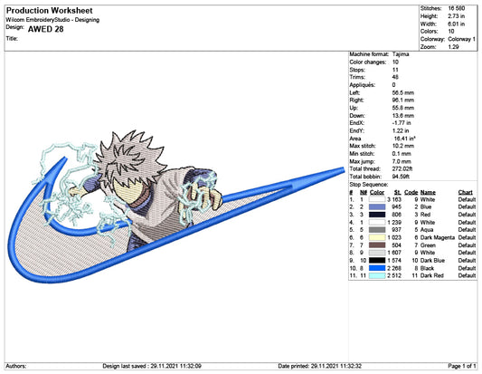 Killua Zoldyck Swoosh v6 Embroidery Design Files - 4 Sizes
