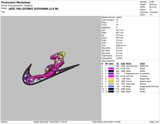 Giorno Giovanna Swoosh Embroidery Design Files - 5 Sizes