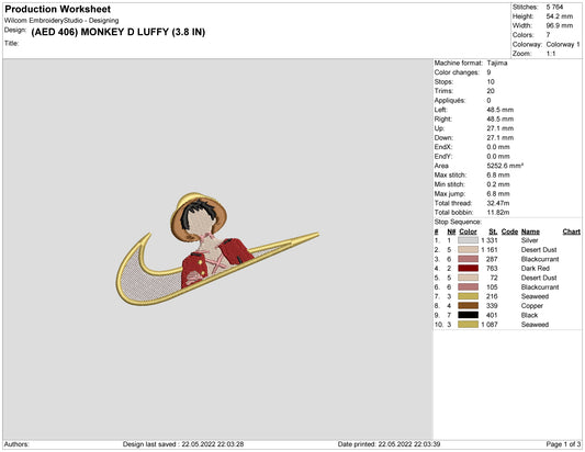 Monkey D Luffy Swoosh v3 Embroidery Design Files - 6 Size's