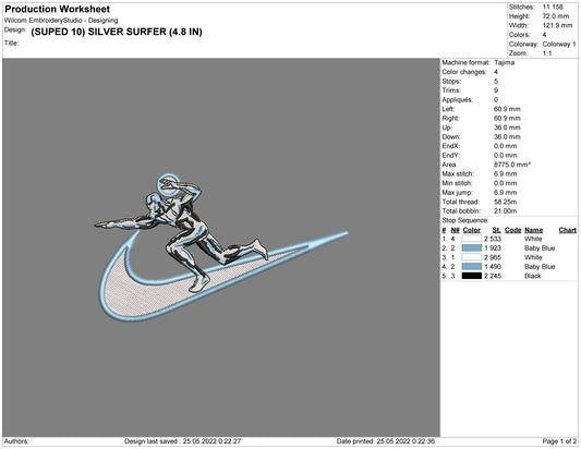 Silver Surfer Swoosh Embroidery Design Files - 5 Size's