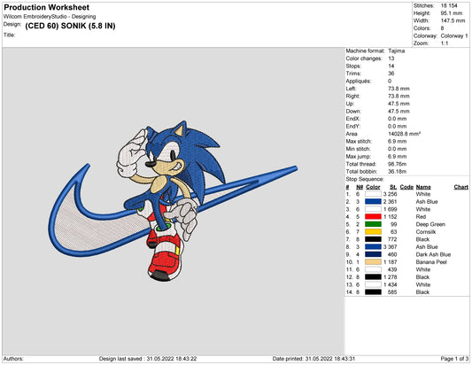 Sonic Swoosh Embroidery Design Files - 4 Size's