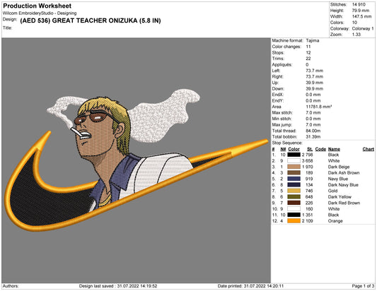 Great Teacher Onizuka v2 Swoosh Embroidery Design Files - 4 Size's