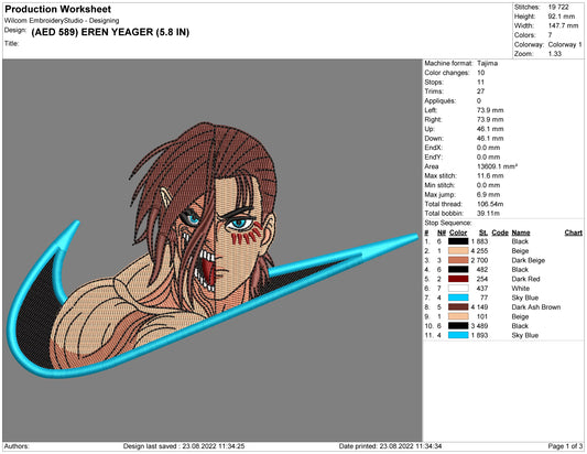 Eren Yeager Swoosh v4 Embroidery Design Files - 6 Sizes