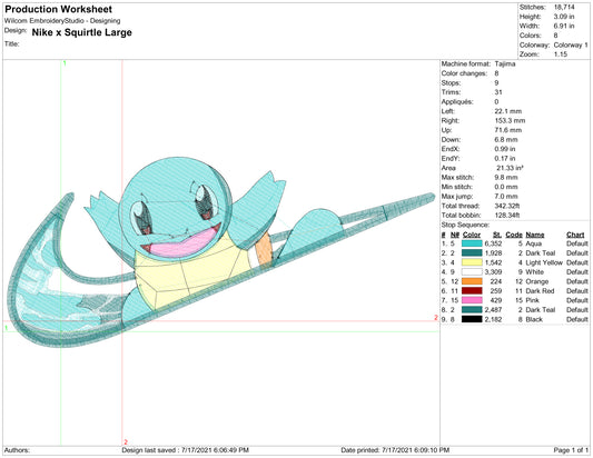 Squirtle Swoosh v2 Embroidery Files - 3 Size's