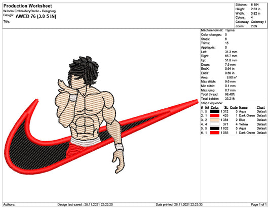 Baki Hanma Swoosh v4 Embroidery Design Files - 6 Sizes