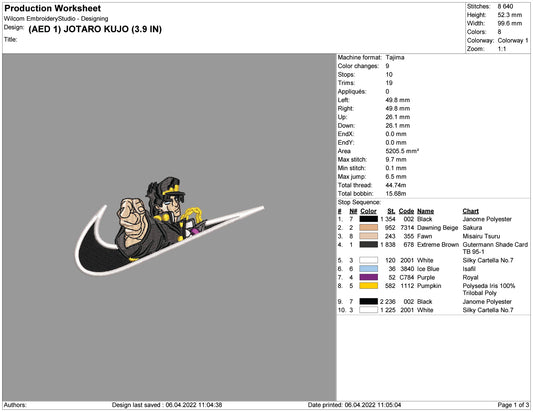 Jotaro Kujo Swoosh Embroidery Design Files - 5 Sizes