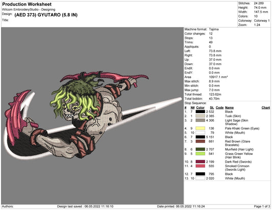 Gyutaro Swoosh Embroidery Design Files - 4 Sizes