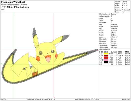 Pikachu Swoosh v2 Embroidery Files - 3 Size's