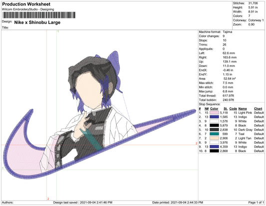 Shinobu Kocho Swoosh v3 Embroidery Design Files - 3 Sizes