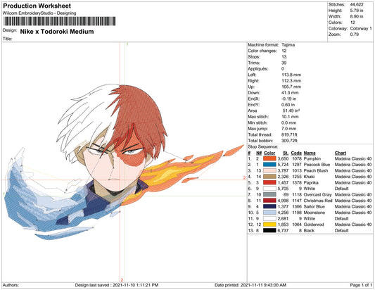 Shoto Todoroki Swoosh v3 Embroidery Design Files - 3 Sizes