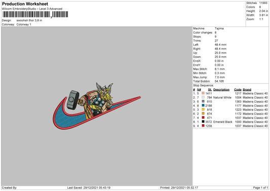 Thor Swoosh Embroidery Design Files - 5 Sizes
