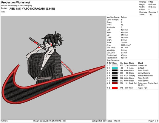Yato Noragami Embroidery Design Files - 5 Size's