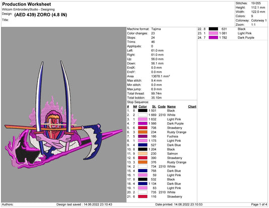 Roronoa Zoro Swoosh v2 Embroidery Design Files - 3 Sizes