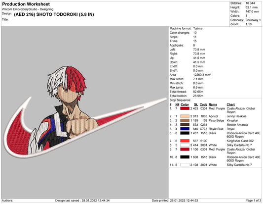 Shoto Todoroki Swoosh v2 Embroidery Design Files - 3 Sizes