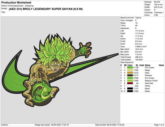 Broly Legendary Super Saiyan Embroidery Design Files - 4 Size's