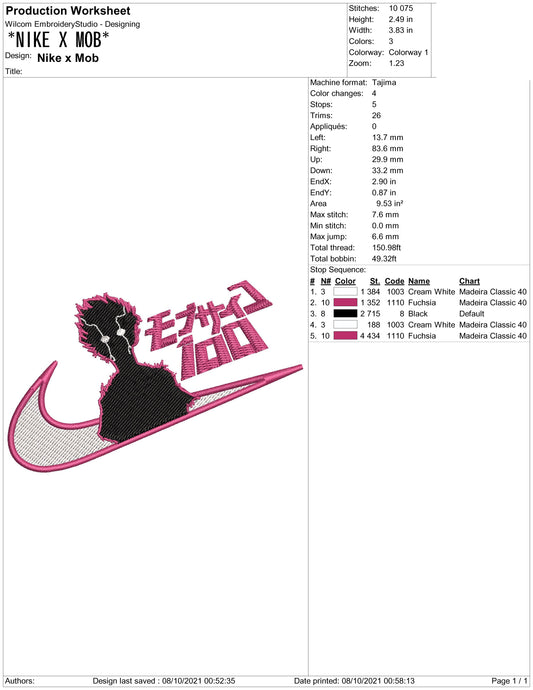Mob Psycho Swoosh Embroidery Design Files - 4 Size's