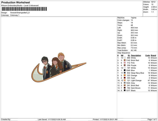 Harry Potter Swoosh Embroidery Design Files - 4 Size's