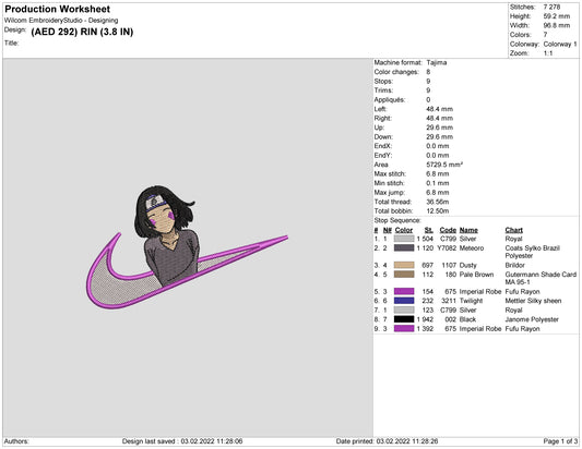 Rin Nohara Embroidery Design Files - 4 Size's