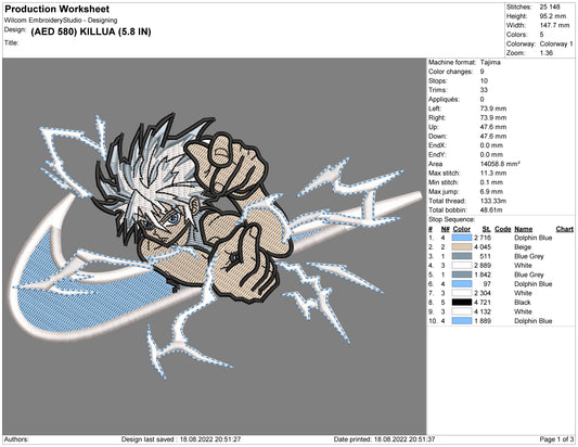 Killua Zoldyck Swoosh v5 Embroidery Design Files - 4 Sizes