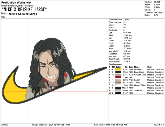 Keisuke Baji Swoosh Embroidery Design Files - 4 Size's