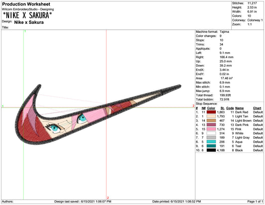 Sakura Haruno Swoosh Embroidery Design Files - 4 Size's
