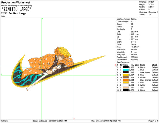 Zenitsu Swoosh v3 Embroidery Design Files - 2 Size's