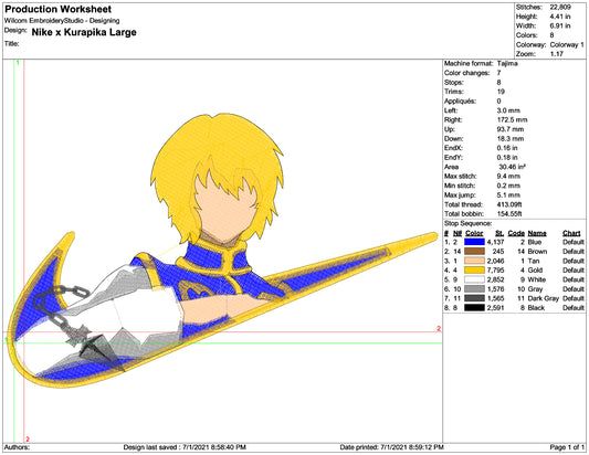Kurapika Swoosh Embroidery Design Files - 3 Size's