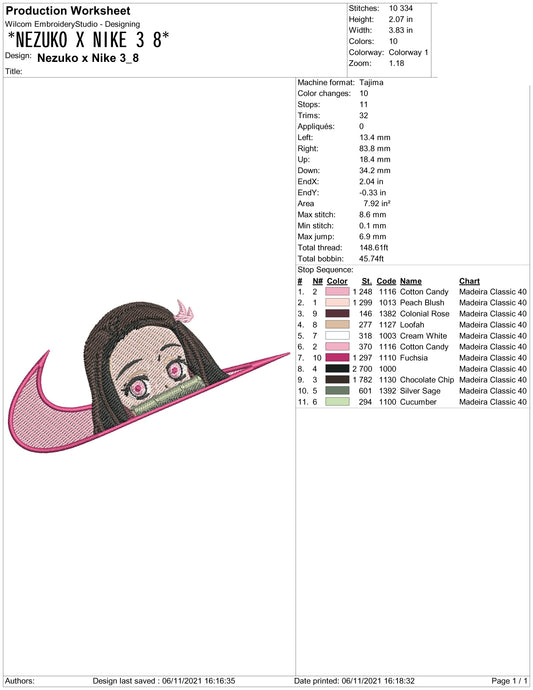 Nezuko Kamado Swoosh v2 Embroidery Design Files - 3 Sizes