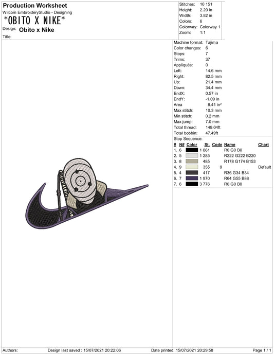Uchiha Obito Swoosh v2 Embroidery Design Files - 4 Sizes