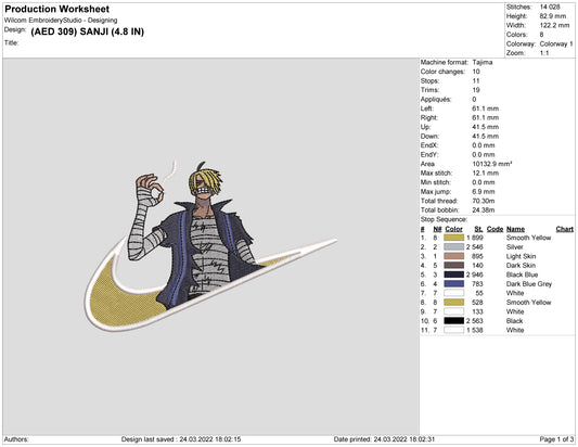 Sanji Swoosh Embroidery Design Files - 4 Size's