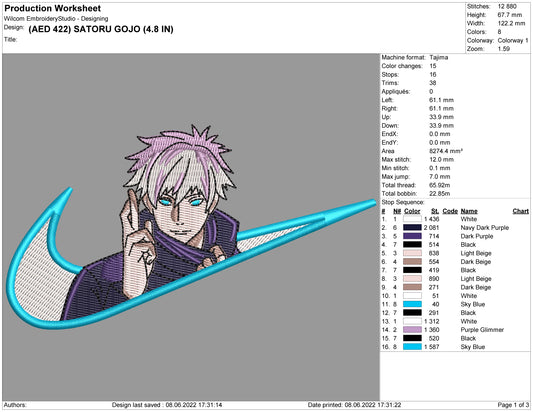 Satoru Gojo Swoosh v2 Embroidery Design Files - 3 Sizes
