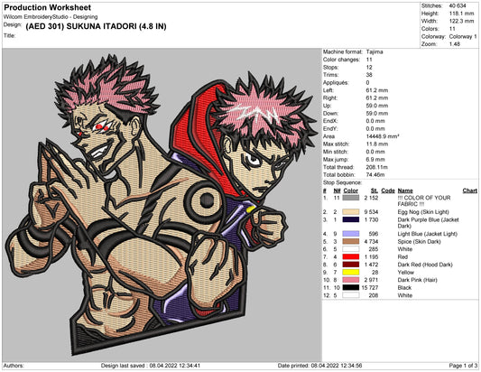 Sukuna Itadori Embroidery Design Files - 4 Size's