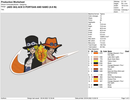 Ace D Pootgas and Sabo Swoosh Embroidery Design Files - 4 Size's