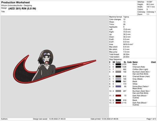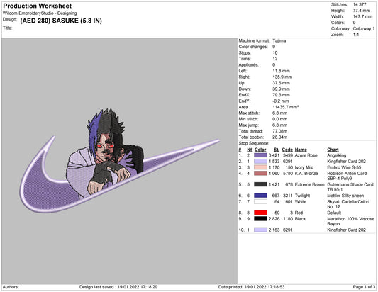 Sasuke Uchiha Swoosh v3 Embroidery Design Files - 4 Sizes