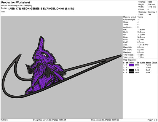 Neon Genesis Evangelion Swoosh Embroidery Design Files - 4 Size's
