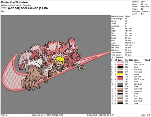 Donquixote Doflamingo Swoosh v2 Embroidery Design Files - 6 Size's