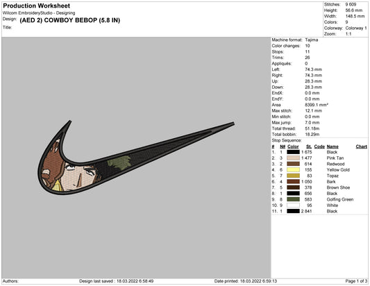 Cowboy Bebop Swoosh Embroidery Design Files - 4 Size's