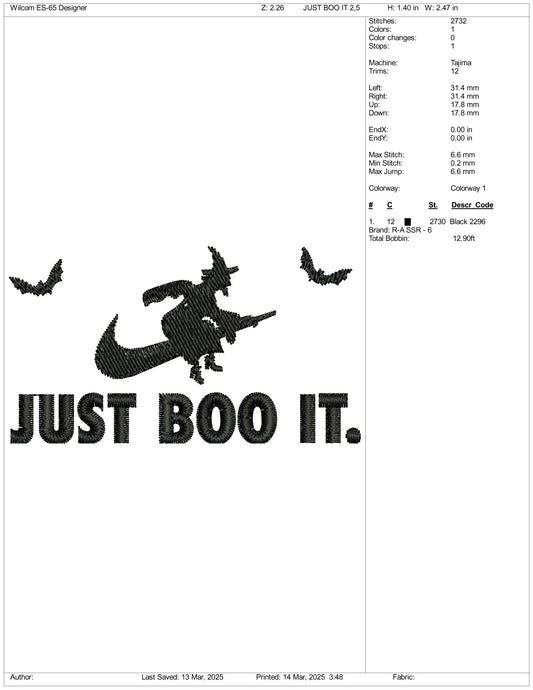 Just Boo It Witch Nike Swoosh Embroidery Design Files - 3 Size's