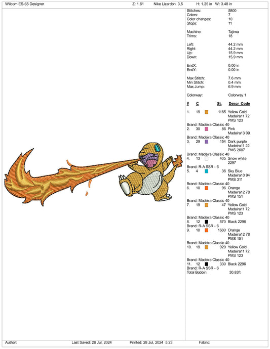 Archivos de bordado Charmander Swoosh - 3 tamaños